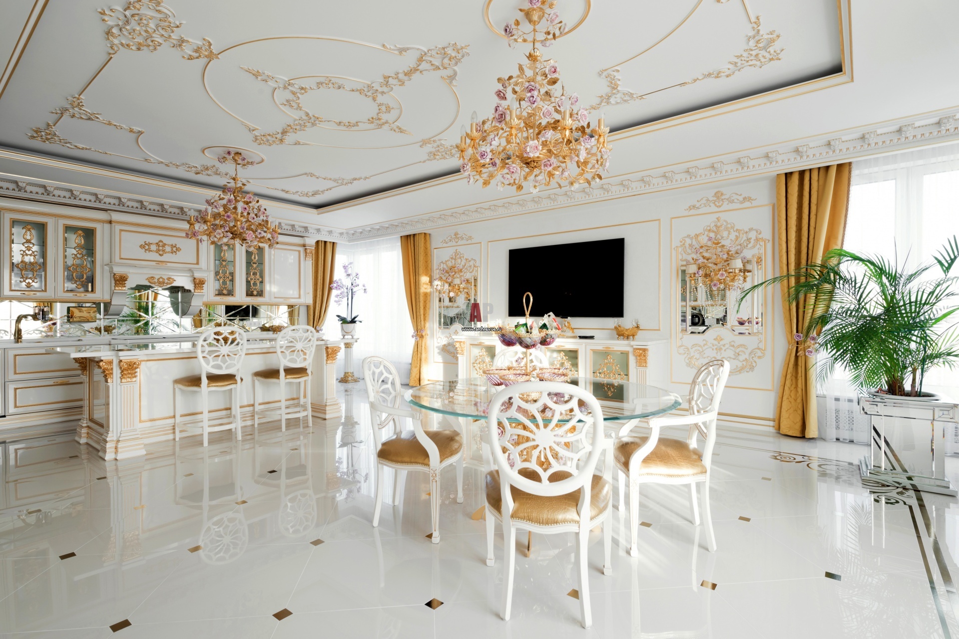 Фото интерьера столовой квартиры в дворцовом стиле