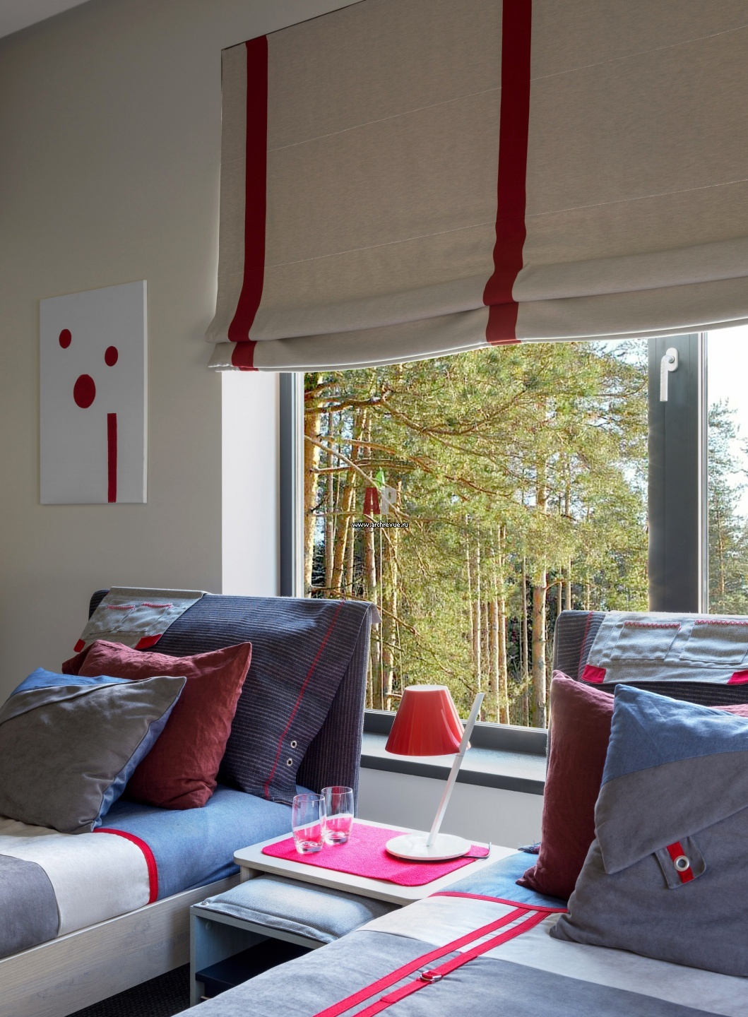 Детская спальня. Окна квартиры обращены в лес, отчего создается ощущение загородного дома.