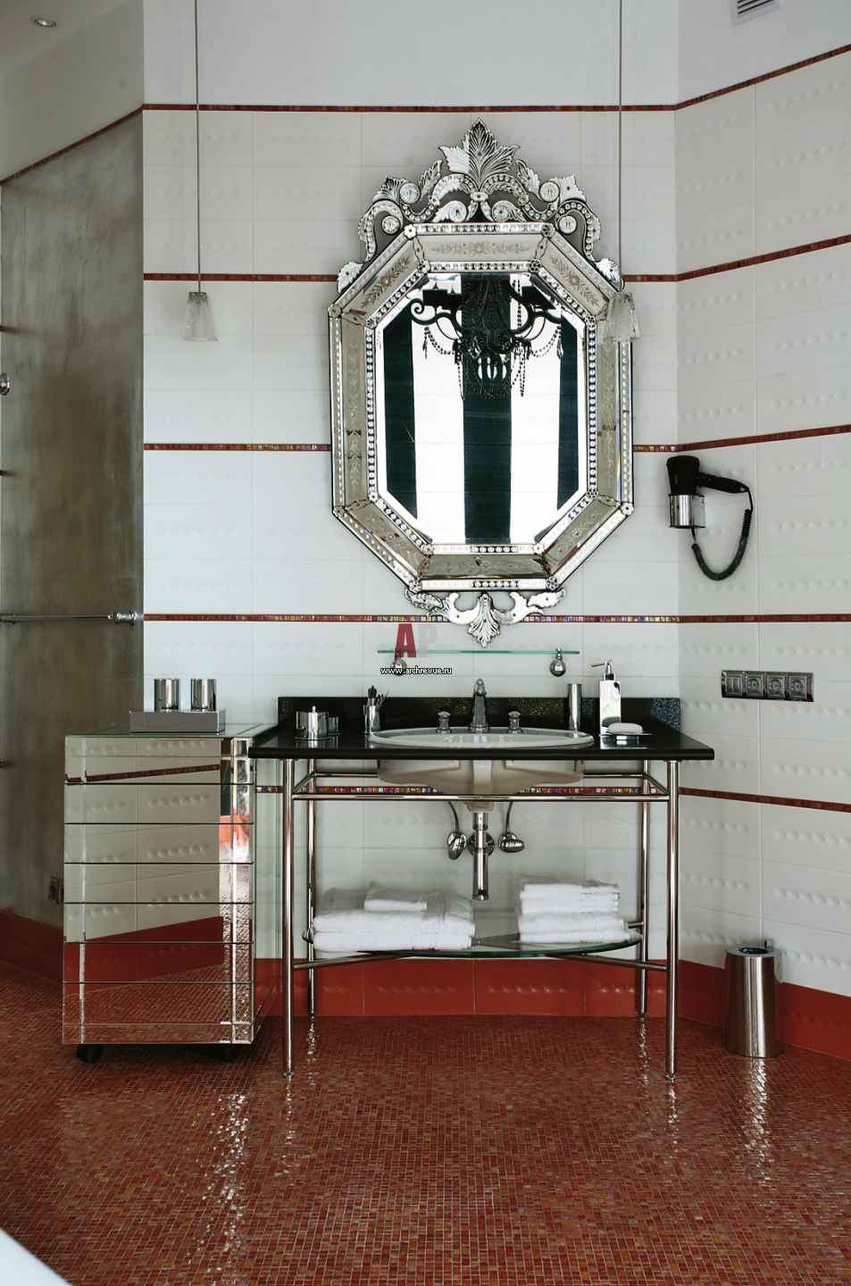 Историческая подробность ванны в неоклассике – антикварное венецианское зеркало ручной работы.