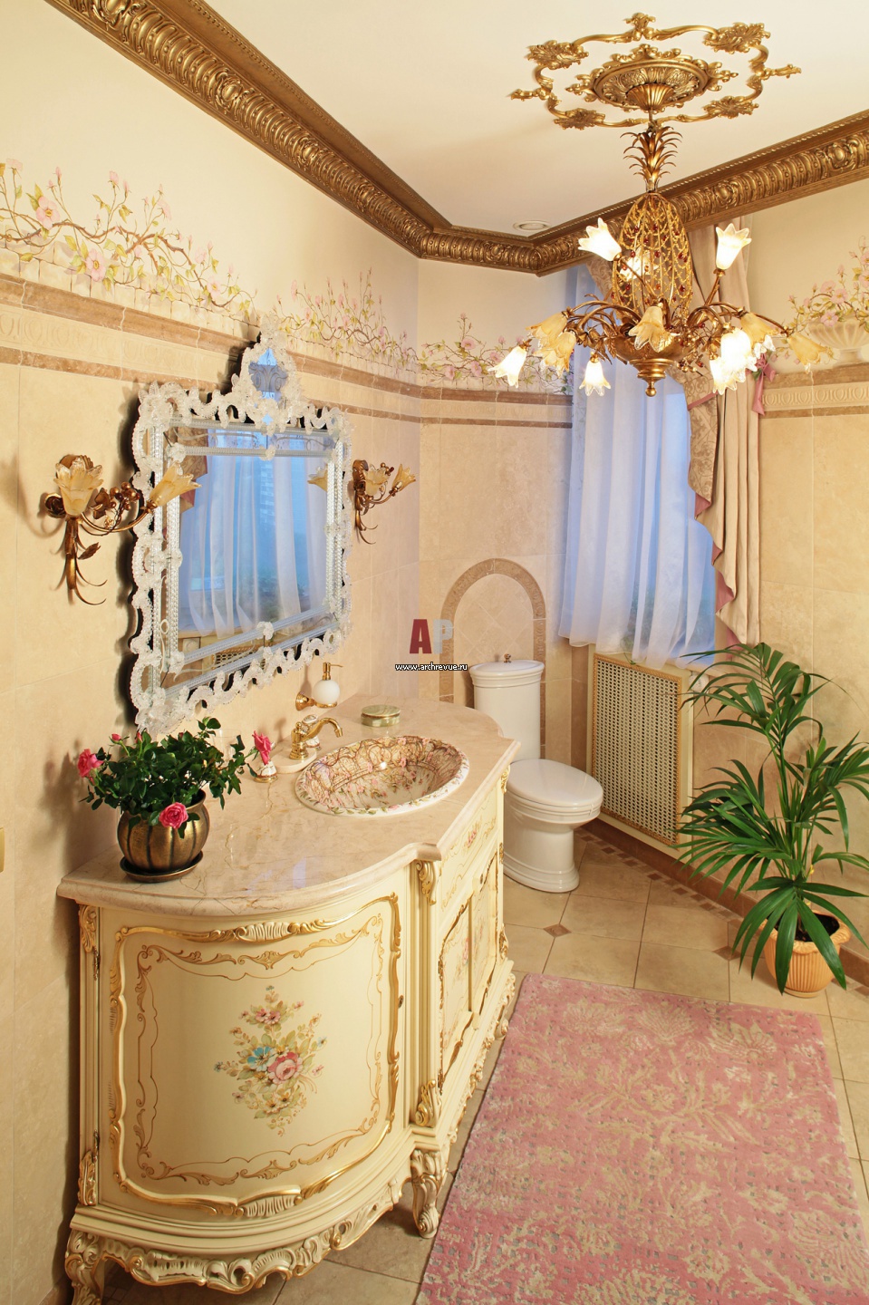 Хозяйская ванная. Роспись на стенах повторяет сюжет орнаментального оформления мойки Kohler.