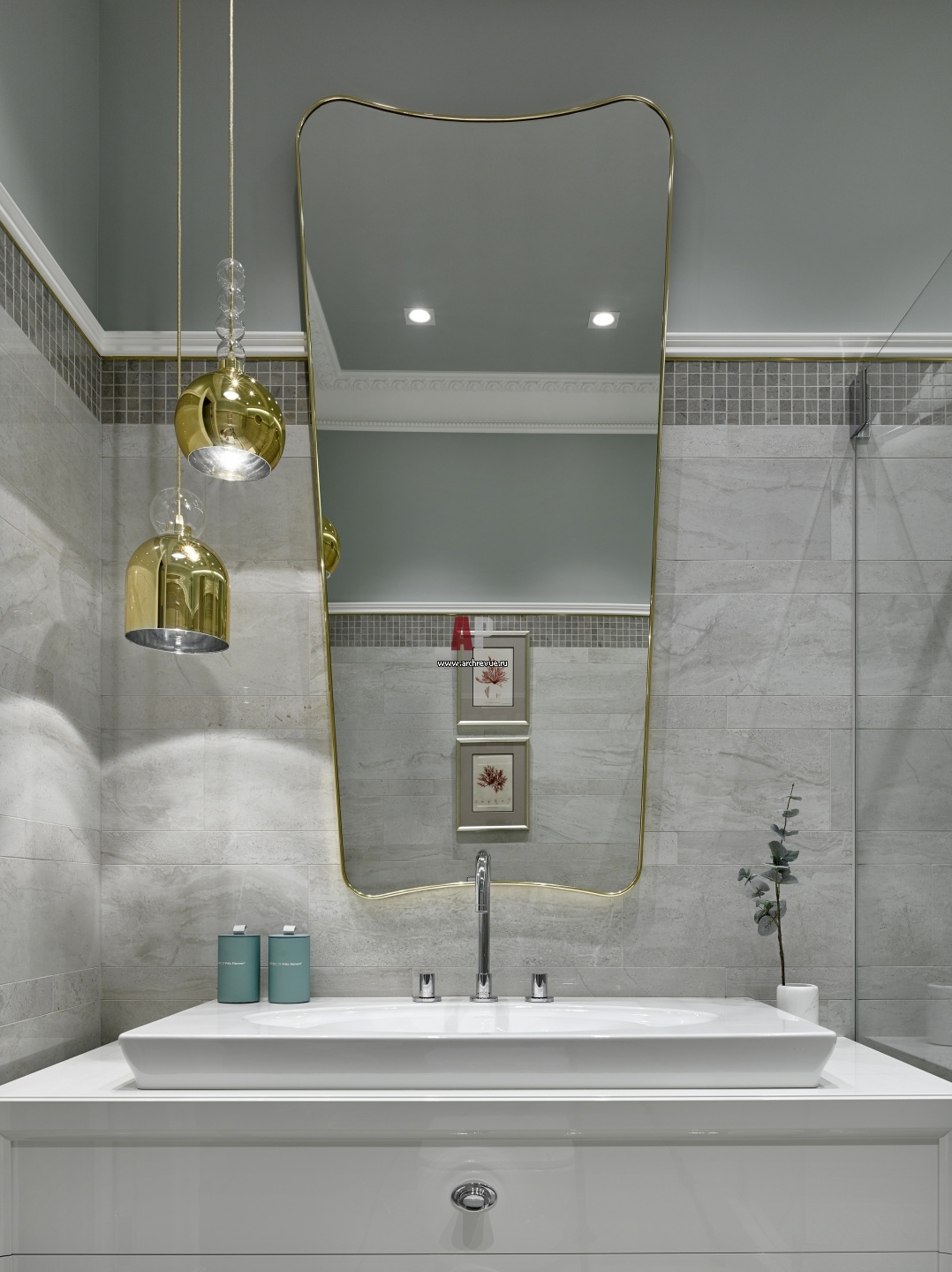 Светлая квартира с легким настроением. Интерьер санузла. Подвесная тумба, раковина, Villeroy & Boch. Зеркало, Gubi. Подвесы, Luci Italiane, дизайнер Дмитрий Логинов.