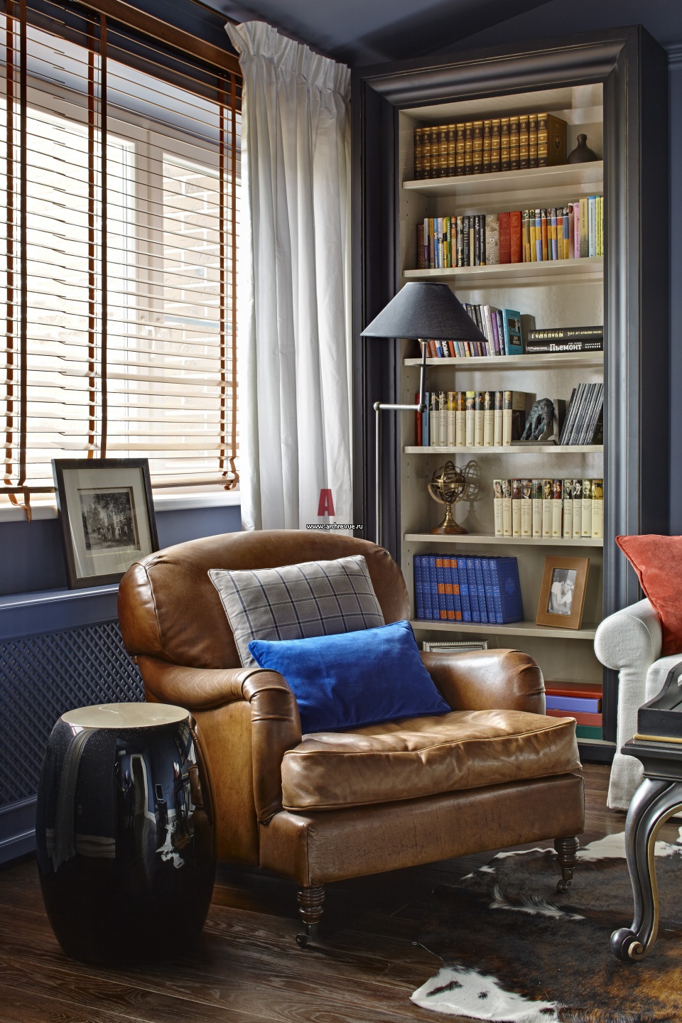 В качестве базовой цветовой гаммы дома выбраны сложные оттенки интеллигентного серого: от пастельных (в гостиной и спальне) до насыщенного (в кабинете).