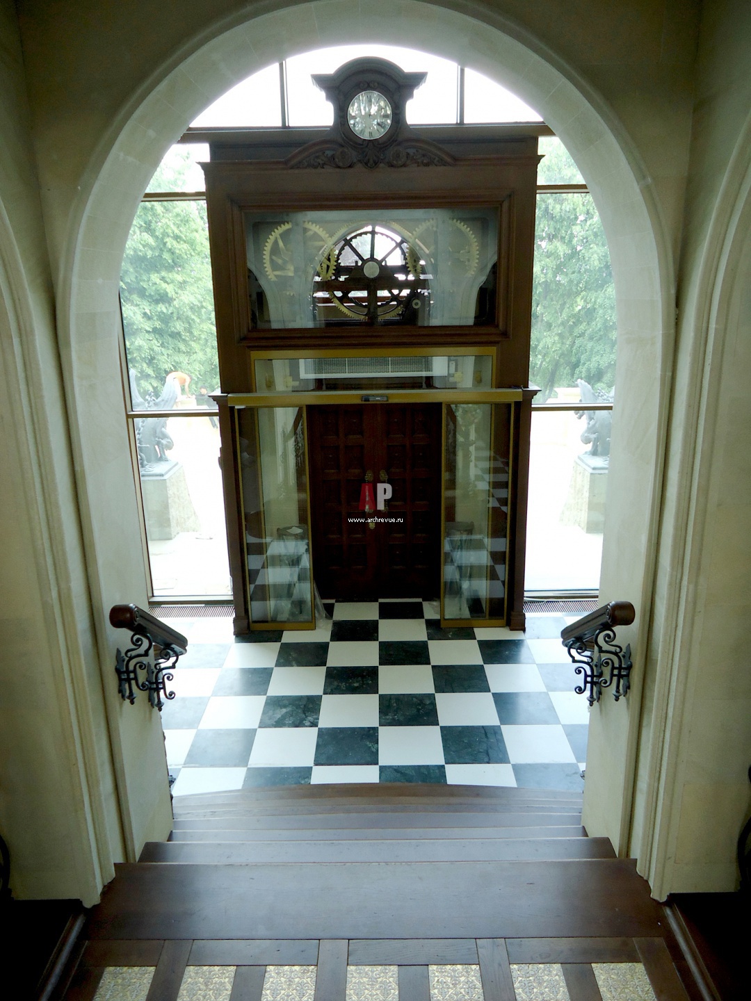 Стимпанковый механизм над входной дверью выполнен как арт-объект. Конструкторское бюро «Геоник-70» трудилось над ним два года. Механизм с шестернями, сделанными методом лазерной резки, и двумя электродвигателями открывает двери с характерным средневековым лязгом.
