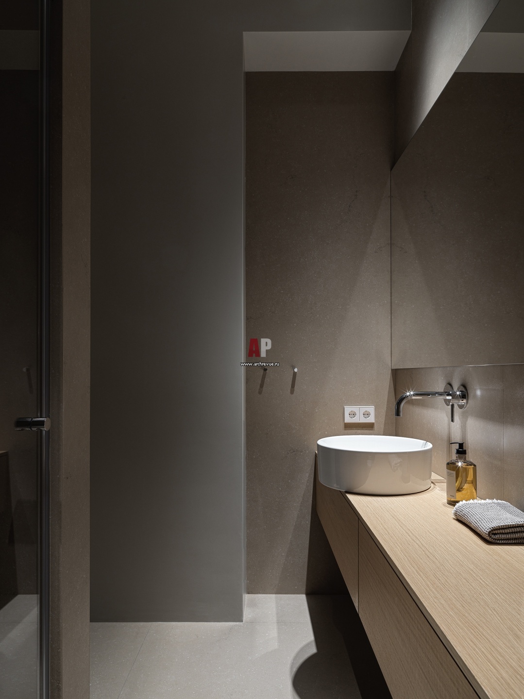 Минималистская квартира в старом жилом фонде на Арбате. Гостевой санузел. Сантехника, Villeroy & Boch.