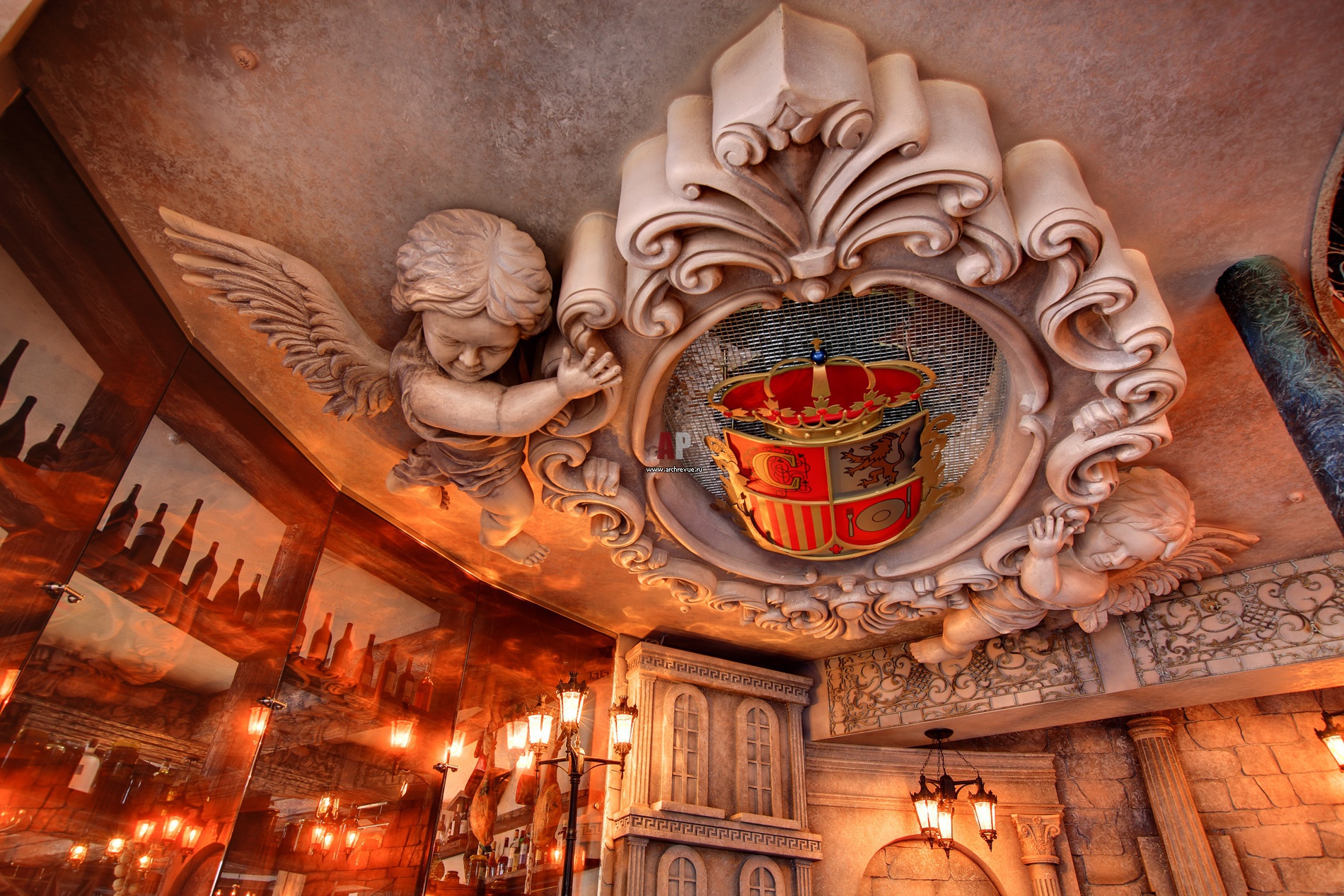 Стилизованный медальон с гербом Испании эпохи великих географических открытий выполнен из гипса мастерами творческой группы «1 апреля».
