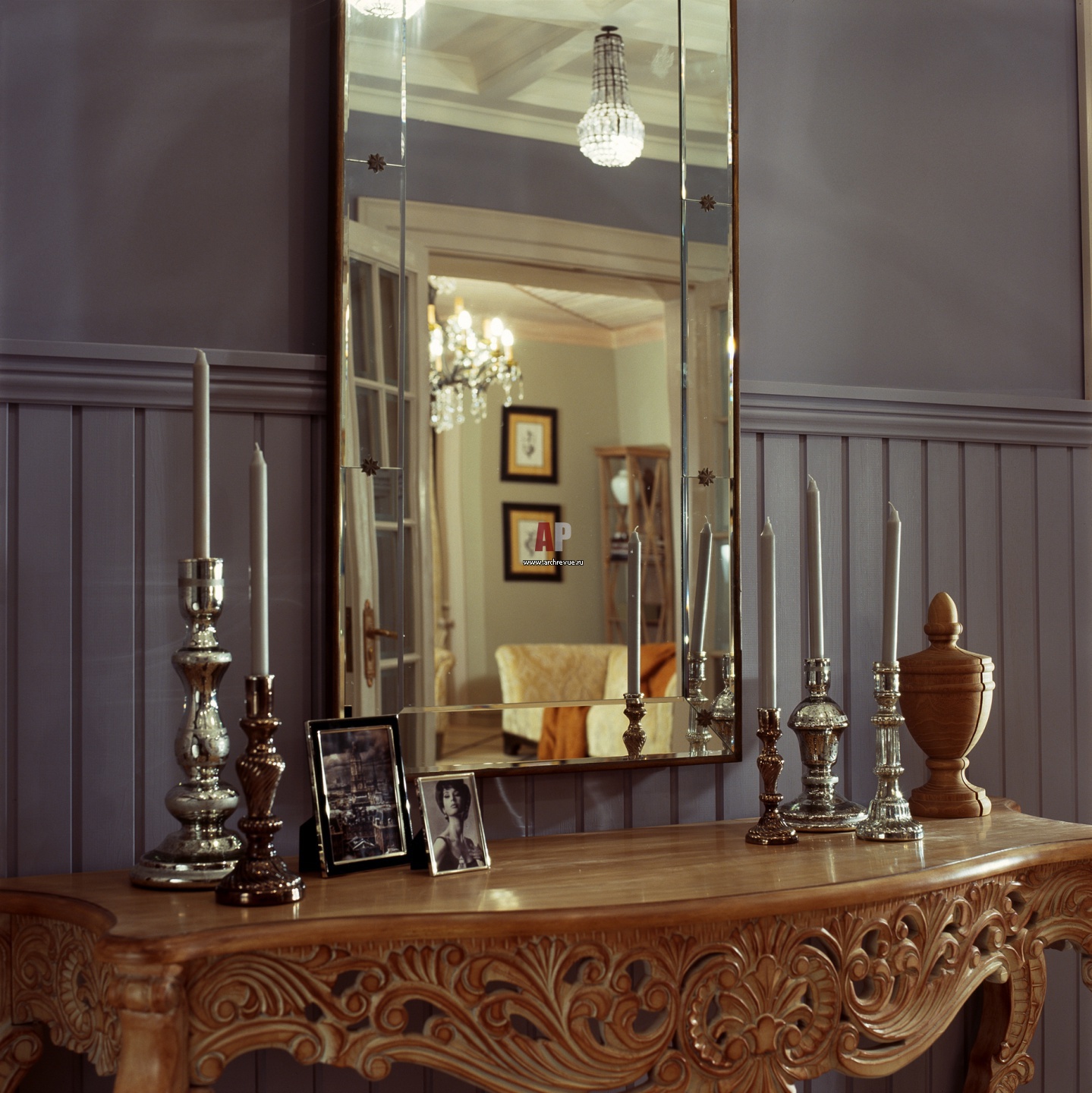 Входная зона выкрашена в лавандовый цвет. Низ стен обит лиственницей, изготовление «Вэстком».