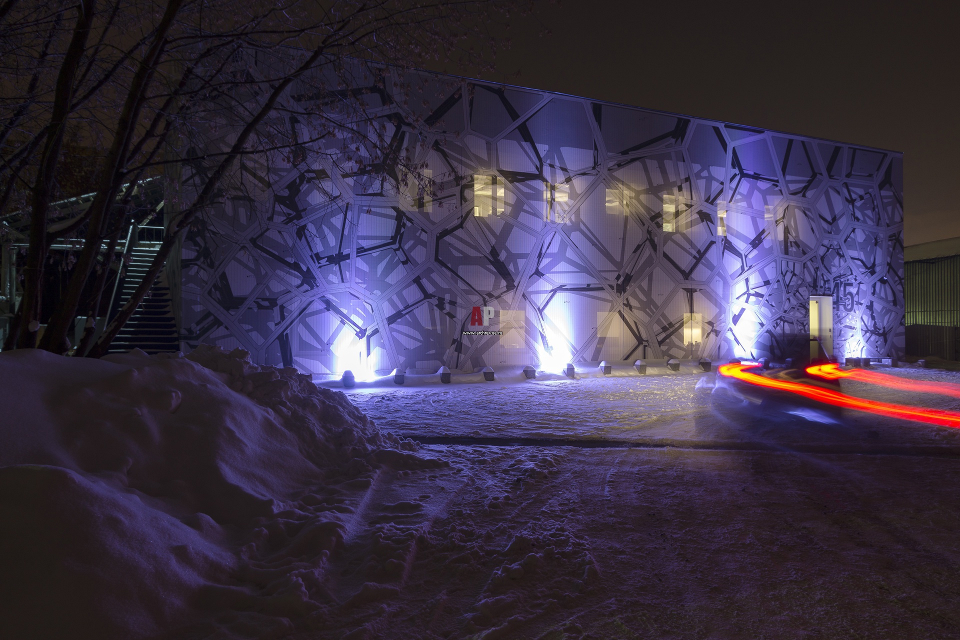 Наружная подсветка фасада Martini. Количество ячеек на светопрозрачном полотне фасада соответствует числу проектов, выполненных бюро UNK project.