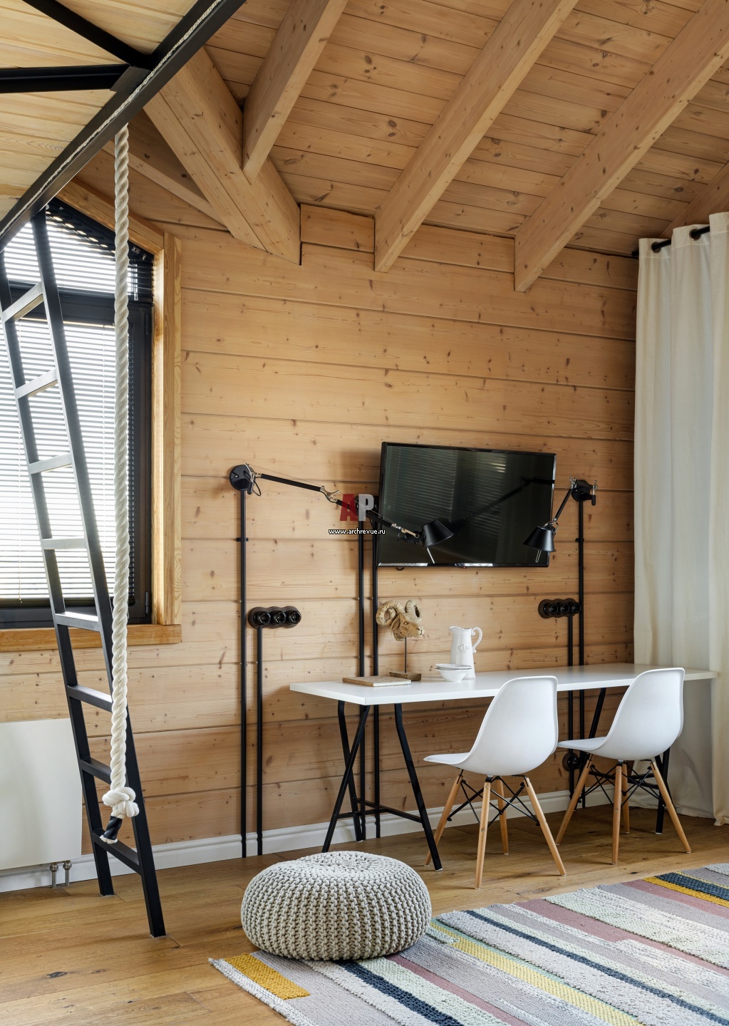 Эклектичное шале у реки. Интерьер детской на втором этаже.
