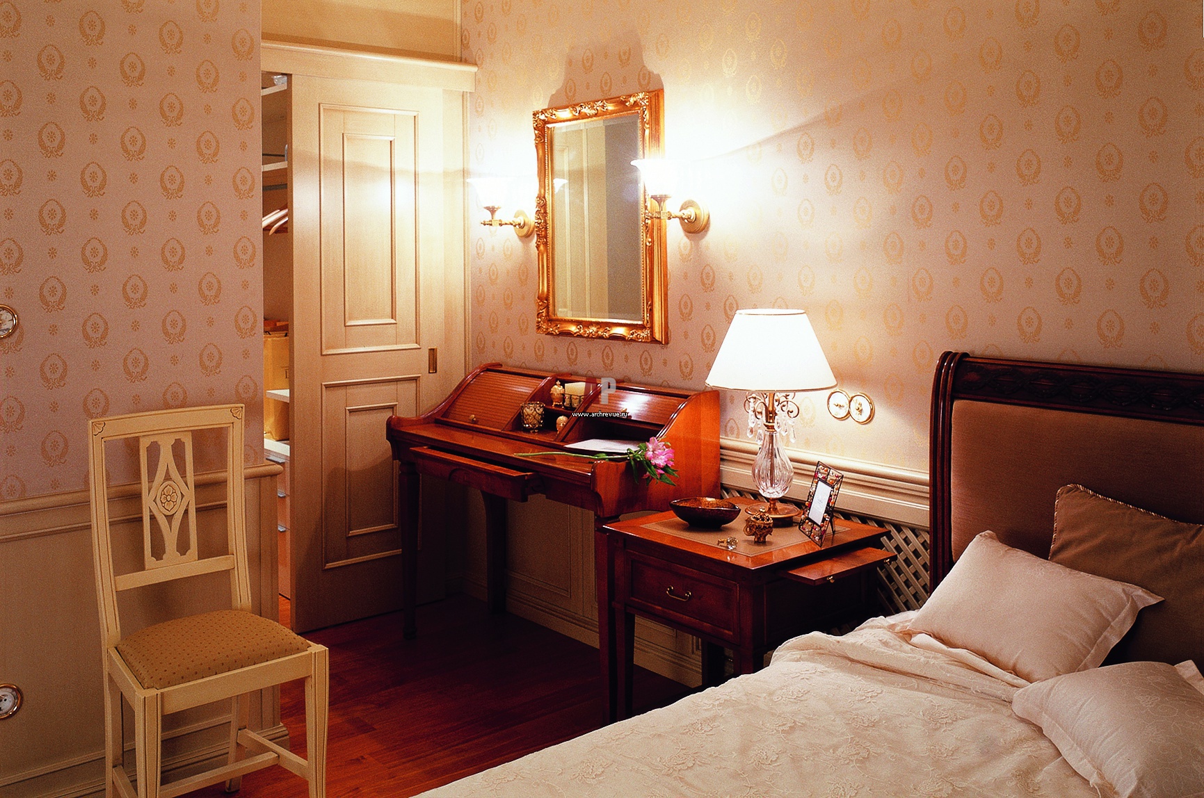 Зона будуара в хозяйской спальне. Встроенный шкаф выполнен по эскизам архитекторов на фабрике Benetti`s Italia из выбеленного дерева.