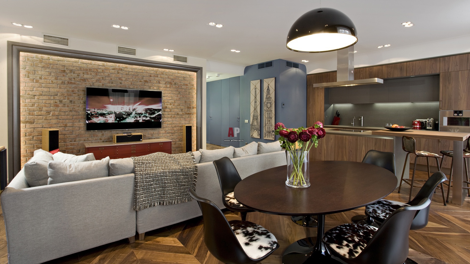 Индустриальный характер помещения преднамеренно подчеркнут мебелью, стилизованной под производственную.