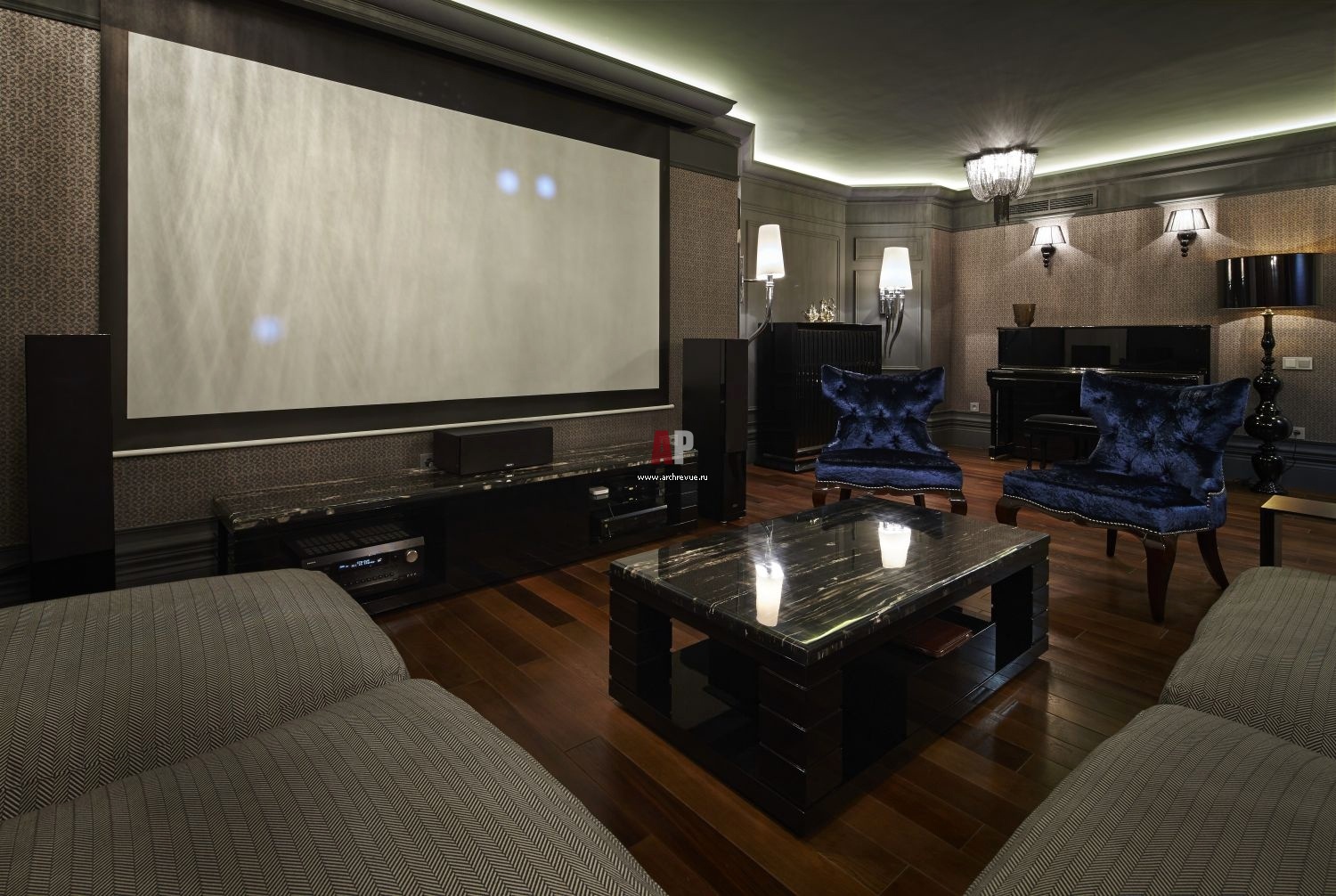 Фото интерьера домашнего кинотеатра таунхауса в стиле неоклассика