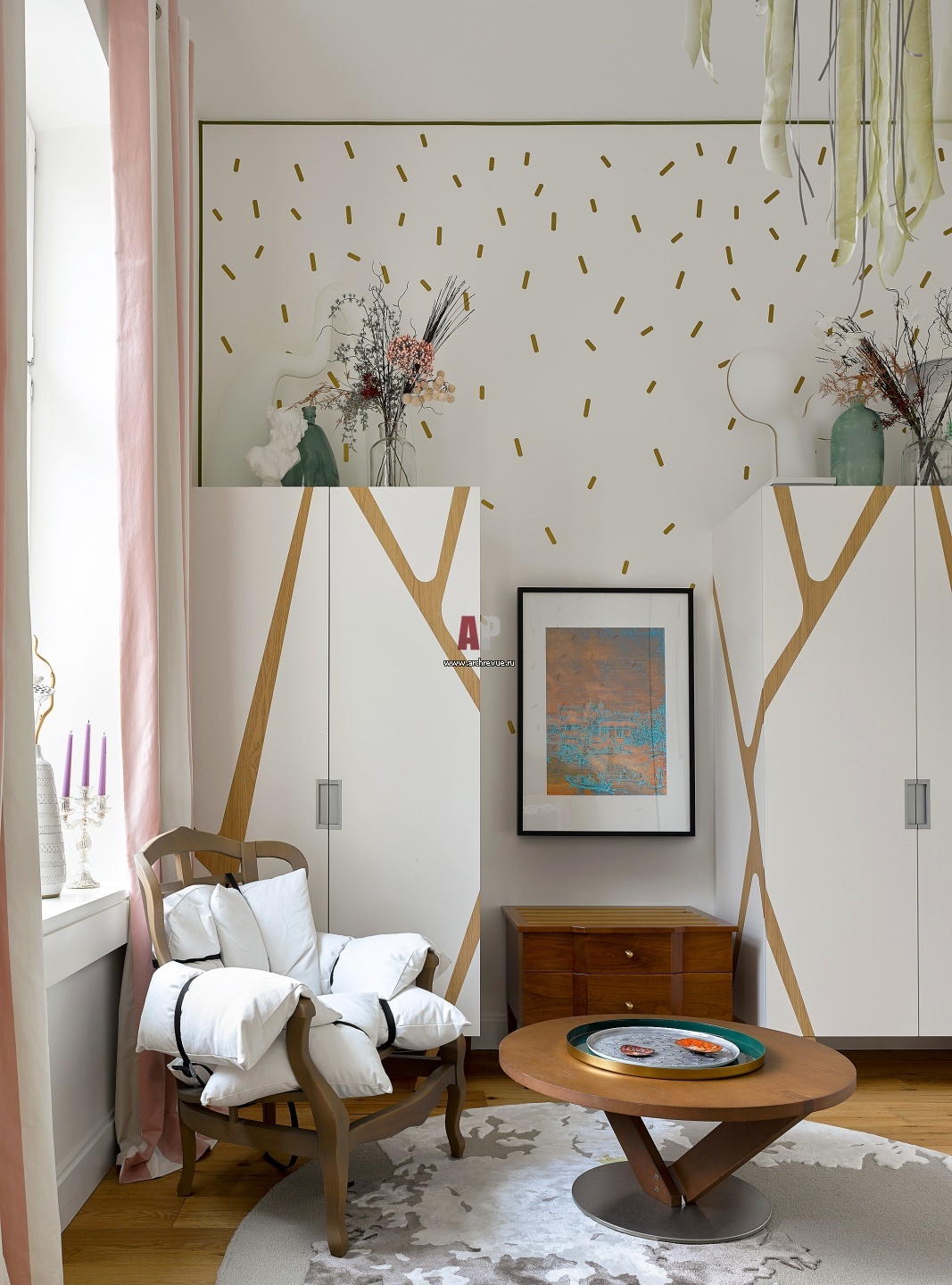 Бутик-апартаменты с двумя спальнями под сдачу в Дюссельдорфе. На шкафах – световые объекты Studio Eero Aarnio, они управляются дистанционно с пульта.