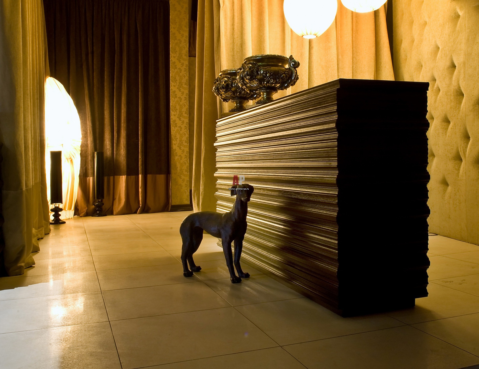 Интерьер ресепшен ресторана в стиле фьюжн.