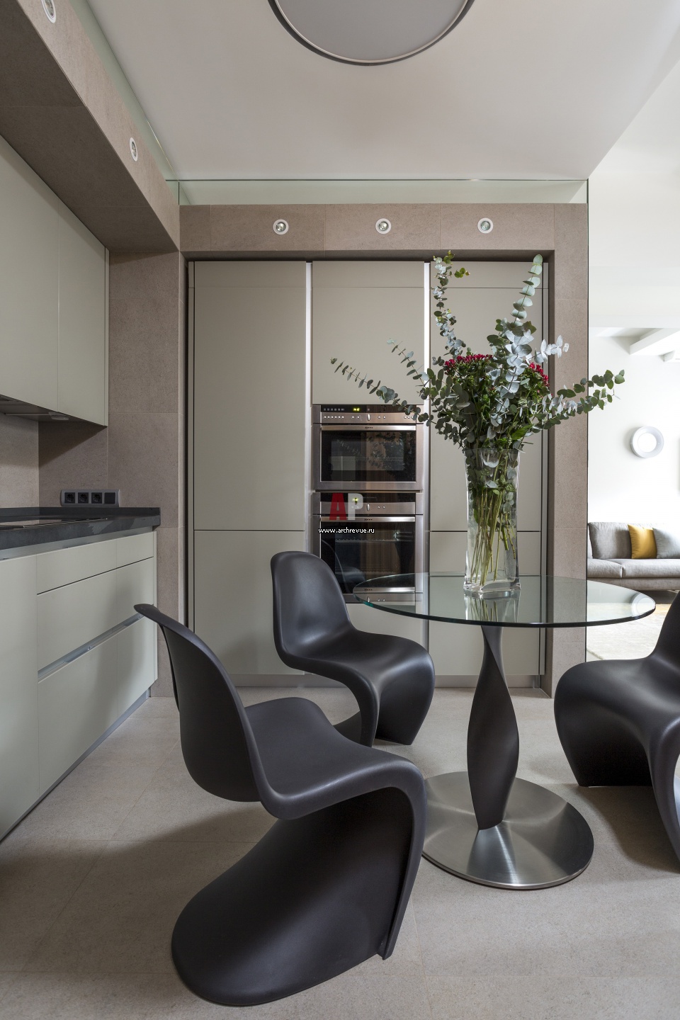 Фото интерьера столовой квартиры в стиле минимализм Фото интерьера кухни квартиры в стиле минимализм