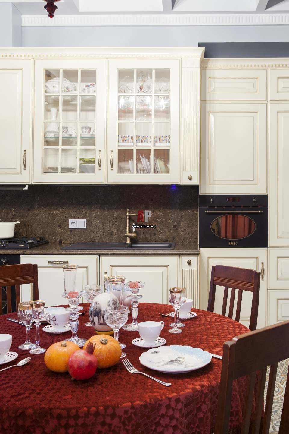 Интерьер кухни с элементами стиля кантри. Кухонный гарнитур Francesco Cesare цвета слоновой кости.