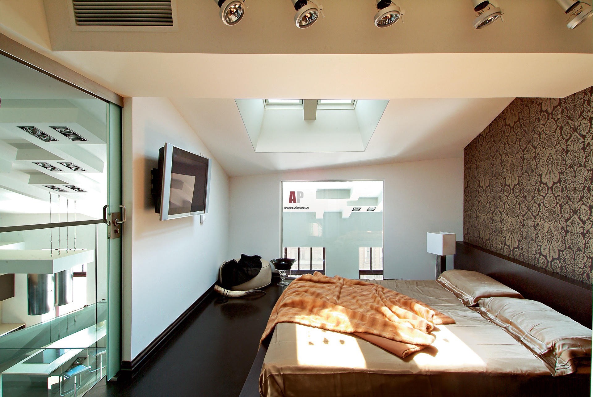 Фото интерьера спальни двухуровневой квартиры в современном стиле