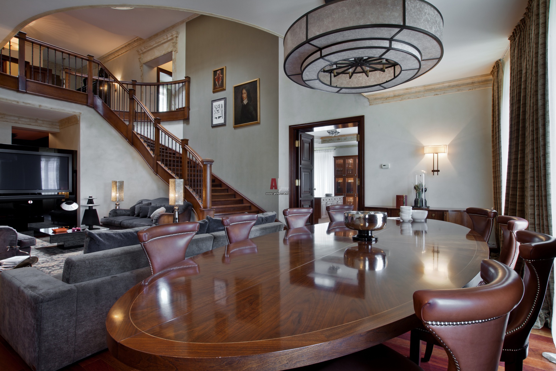 Стены во всех помещениях дома отделаны однотонными матовыми красками на базе серого, бежевого, коричневого и болотного оттенков. Декоративные покрытия Sikkens, поставщик «Дом Краски / Деко – Эм».