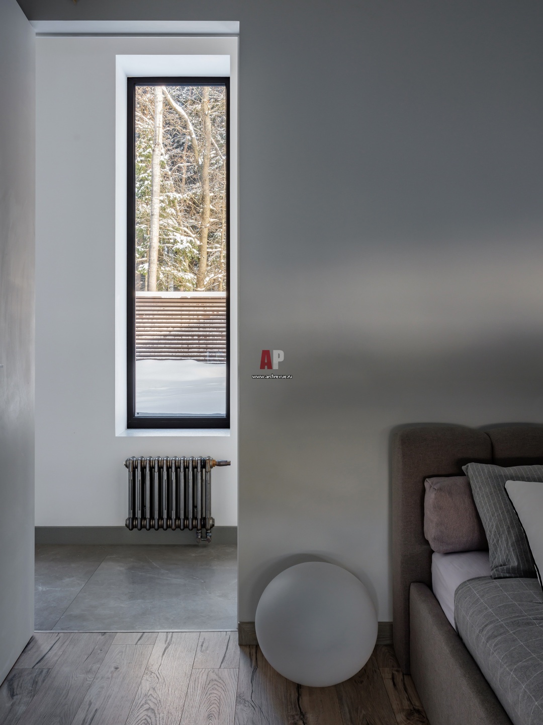 Одна из детских комнат. В семьи три сына, поэтому заказчики хотели три абсолютно одинаковые по площади (16 кв. м) и функционалу комнаты. Детские выстроены в единую линию вдоль коридора-галереи и сориентированы на юго-запад – оптимальное для детских помещений расположение, чтобы получать максимум послеобеденного света.