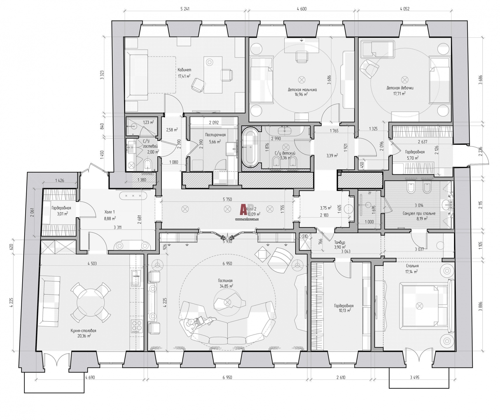Перепланировка квартиры в историческом здании на Пречистенке.