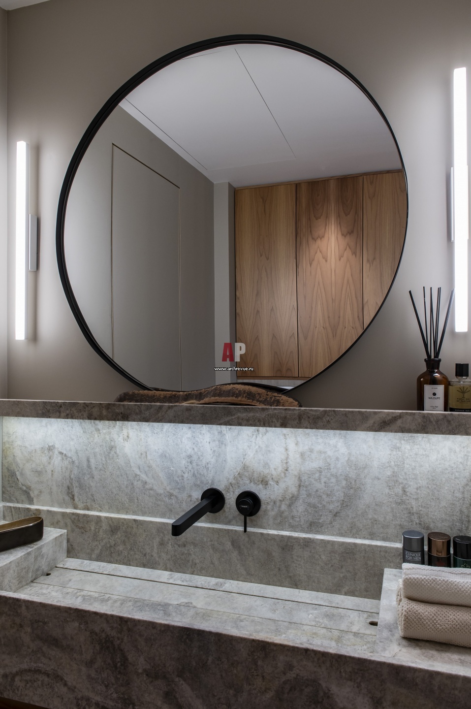 Санузел с раковиной из натурального камня. Смесители, Hansgrohe.