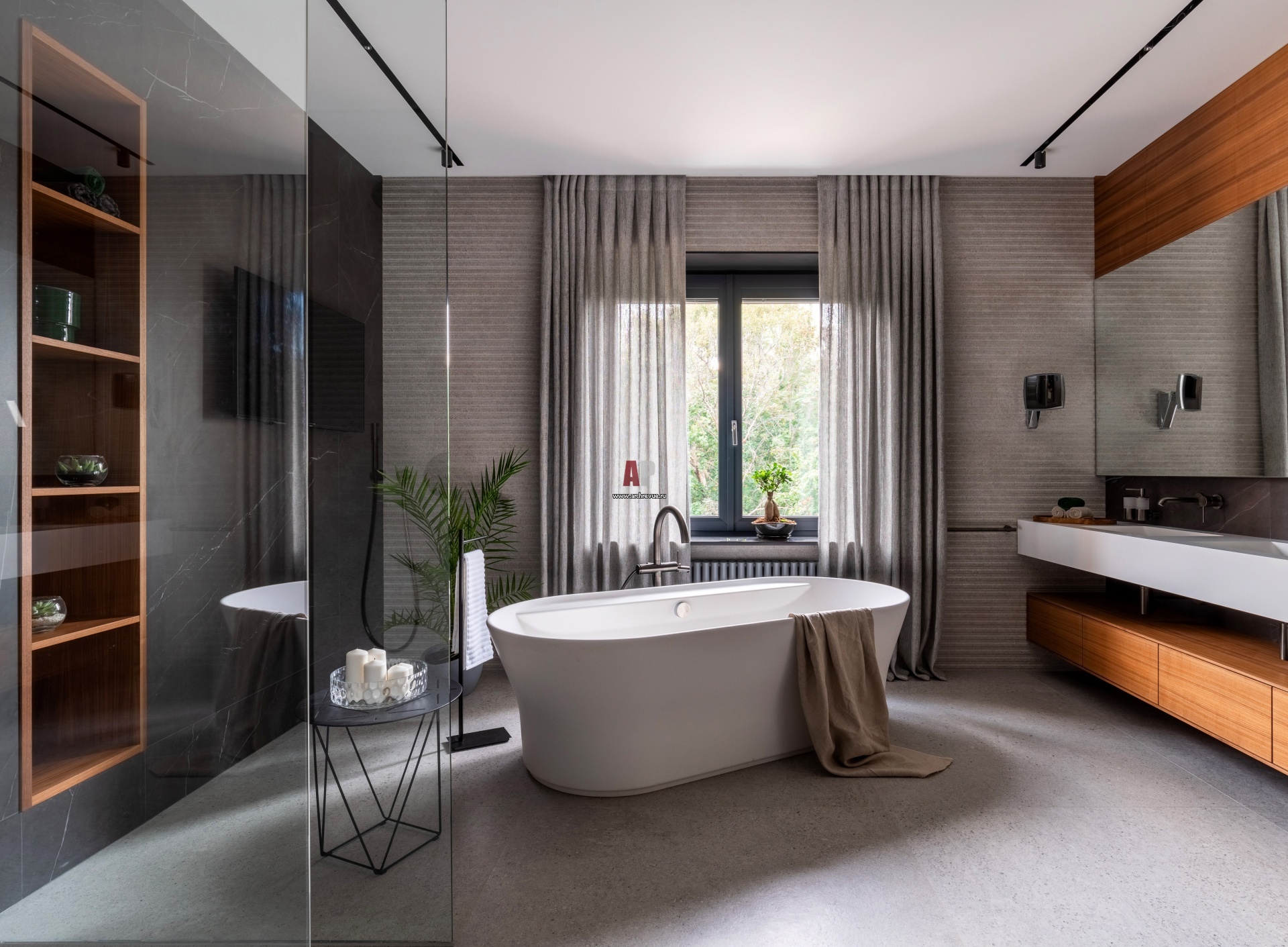 Главная ванная комната. Ванна Noken, коллекция Tono. Напольный смеситель, Grohe.