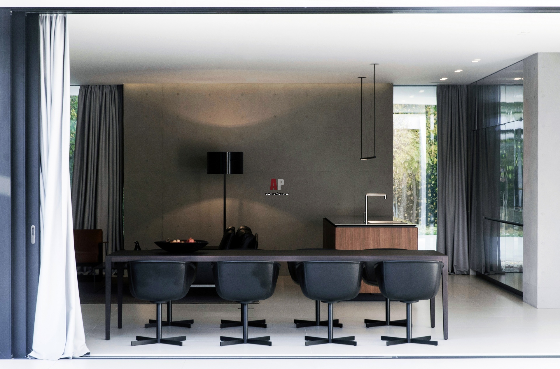 Зона столовой в общей гостиной. Обеденный стол, стулья, Poliform.