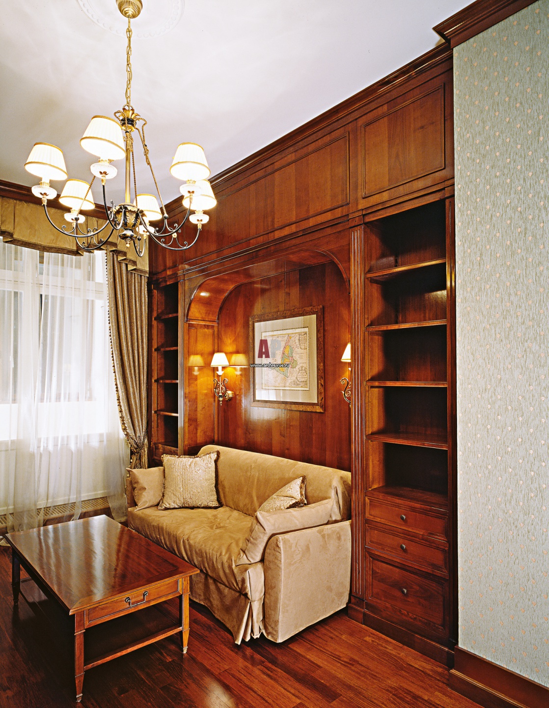 Особое внимание уделено текстильному дизайну. В декоре использованы ткани от известных немецких, французских и итальянских производителей.