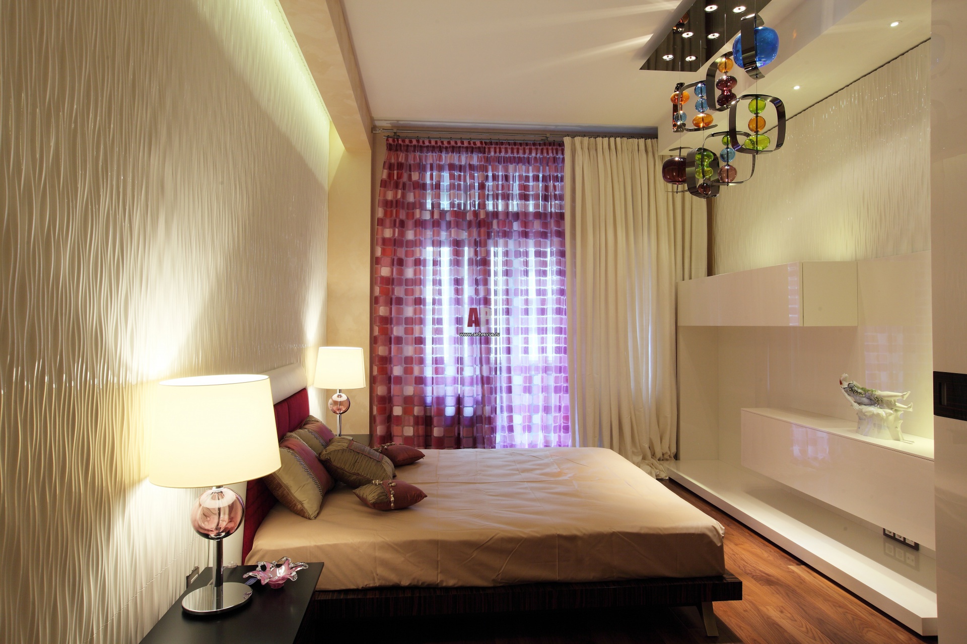 Интерьер современной детской комнатой с лакированной белой мебелью и рельефными стеновыми 3D панелями.
