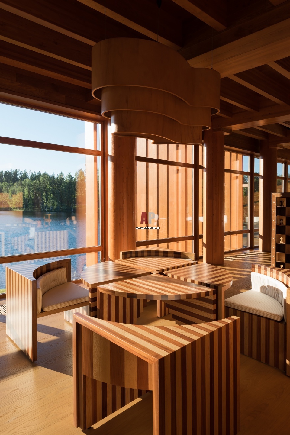 Усадьба Клаугис в Латвии. Конструкции, стены, мебель, декор и даже светильник выполнены из дерева.