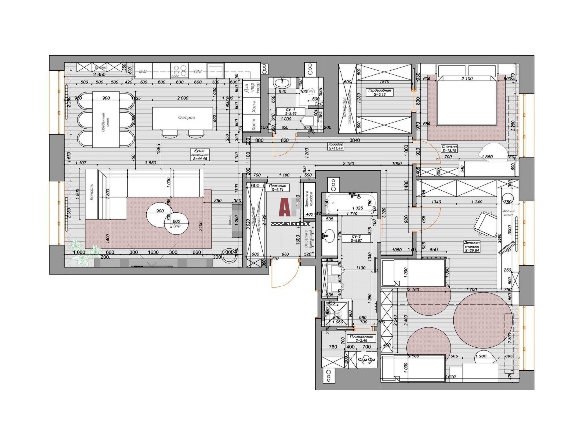 План квартиры для семьи с 2-мя детьми после перепланировки дизайнером.