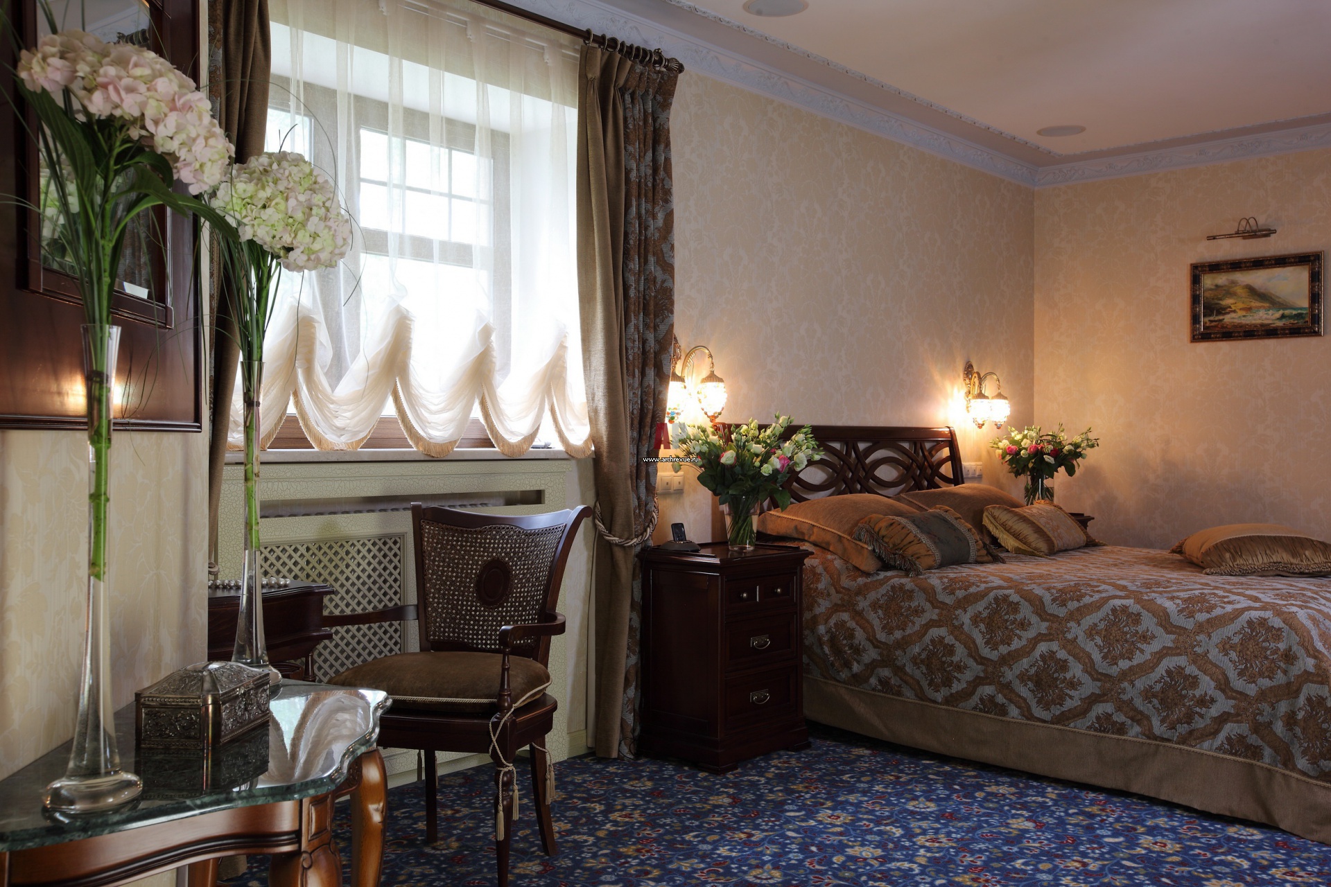 Фото интерьера спальни в стиле неоклассика. Ковровые покрытия с разнообразным цветочным орнаментом использованы во всех жилых помещениях дома. Кровать, Tomasella.