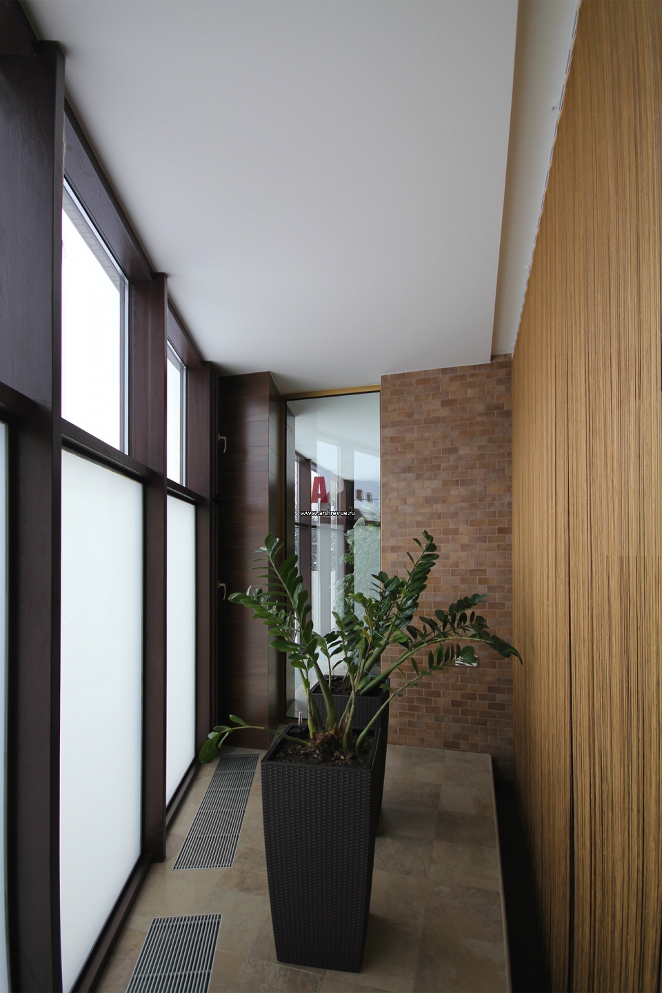 Вдоль больших окон в гостиной и спальнях устроен зимний сад.