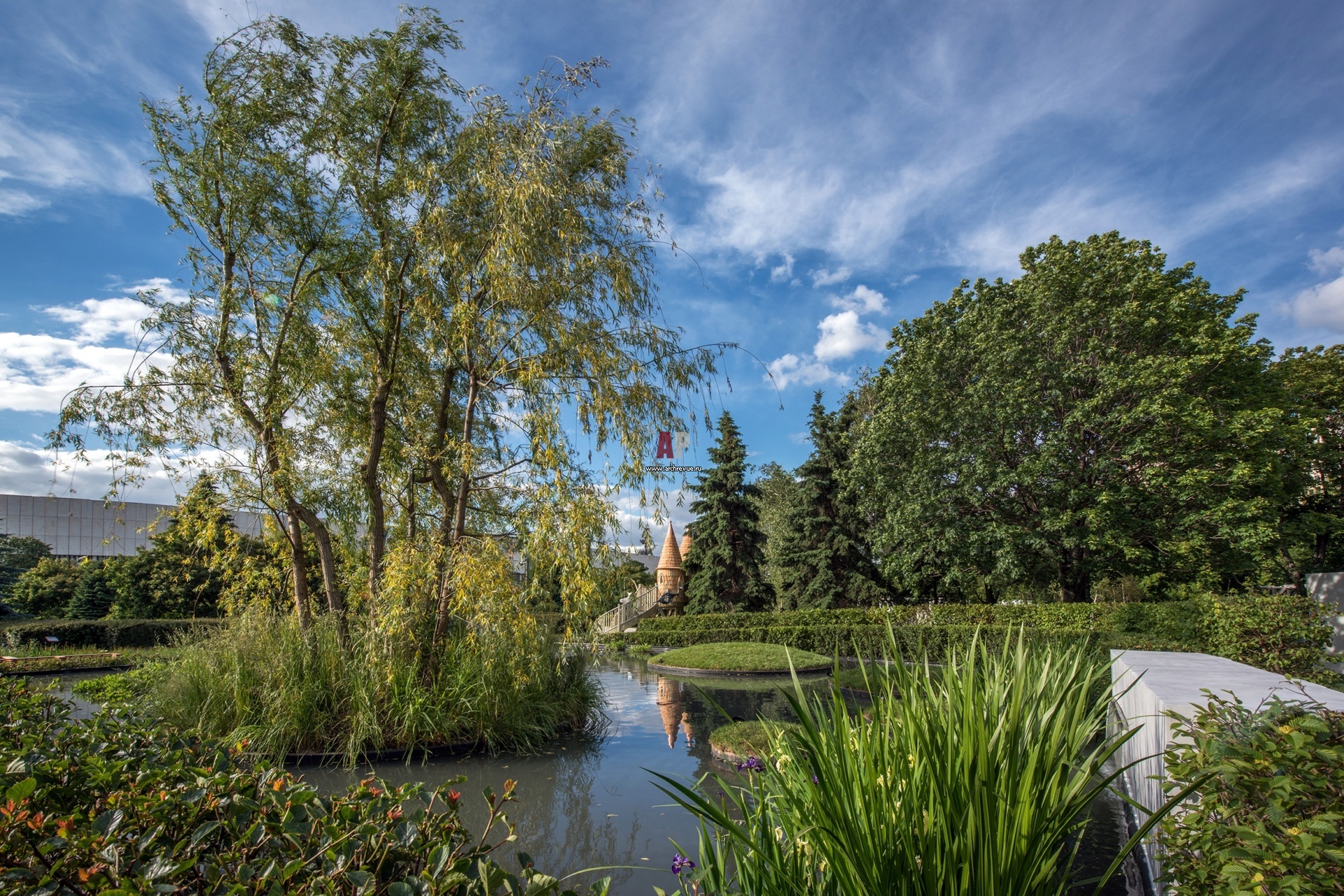 Геометрия природы. Выставочный сад с водоемом в историческом центре Москвы.