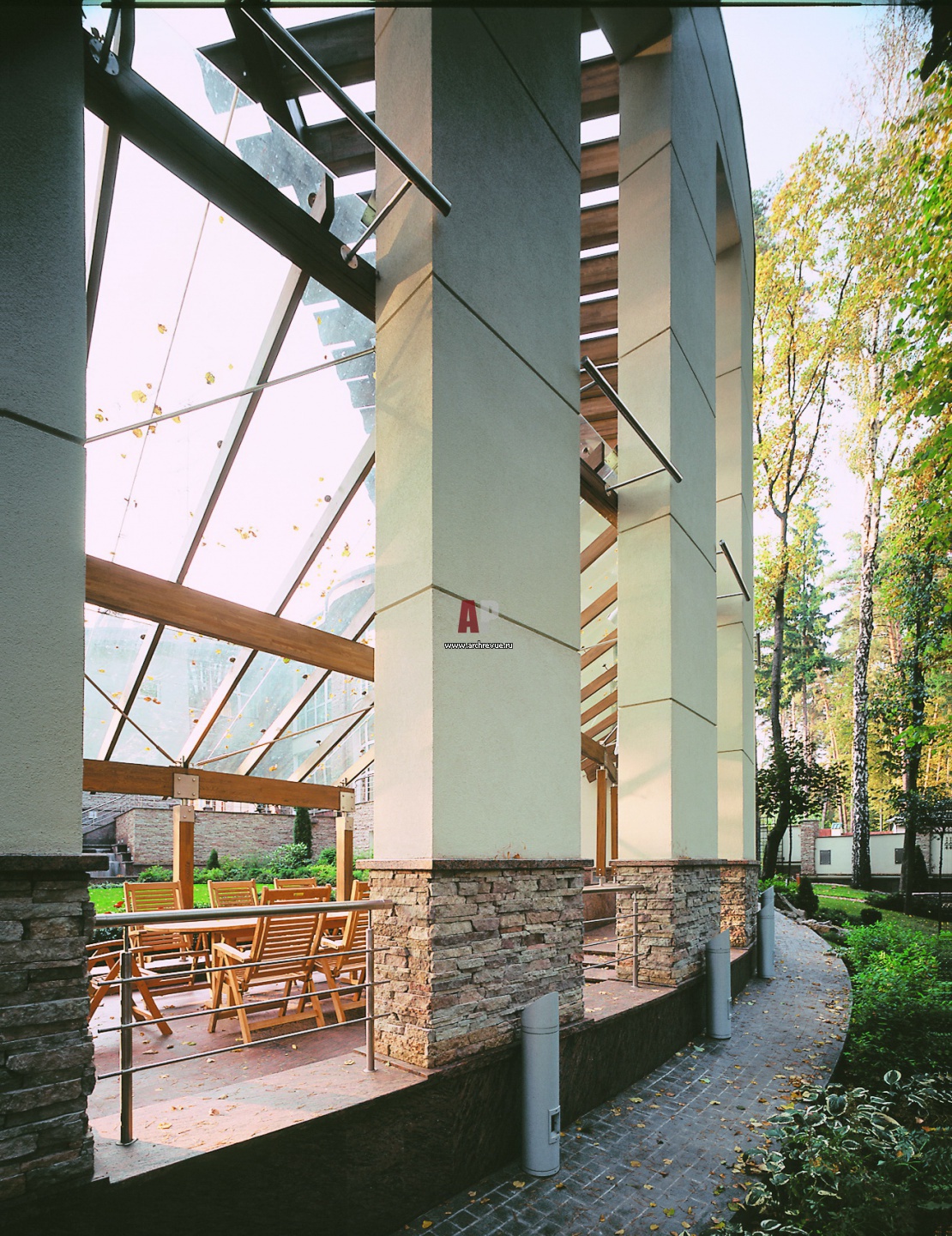 Пилоны, формирующие террасу, оснащены системой тросов, которые могут быть увиты вьющимися растениями.