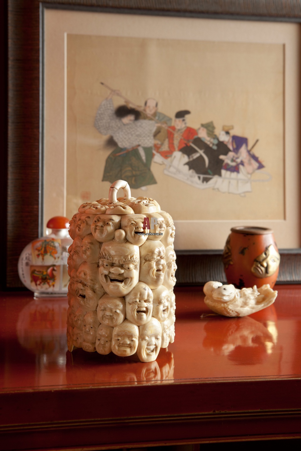 Фото детали интерьера квартиры в стиле фьюжн с предметами искусства