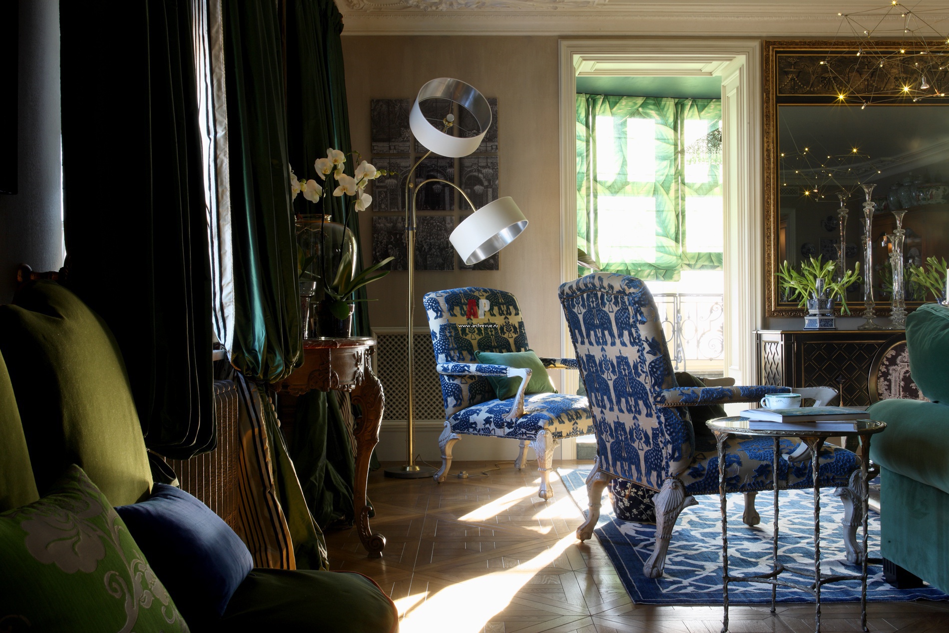 Фрагмент интерьера гостиной в неоклассике. Кресла Andrew Martin.