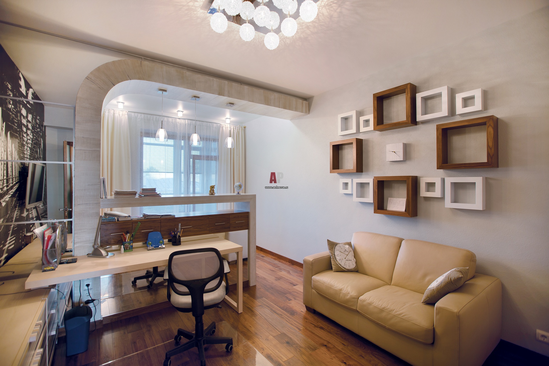 Детская в современном стиле. В ней предусмотрено три зоны: спальная, рабочая и зона отдыха с диваном.