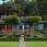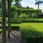 Нижний ярус парадной композиции перед домом образован роскошным розарием с партерами из стриженых кустарников.