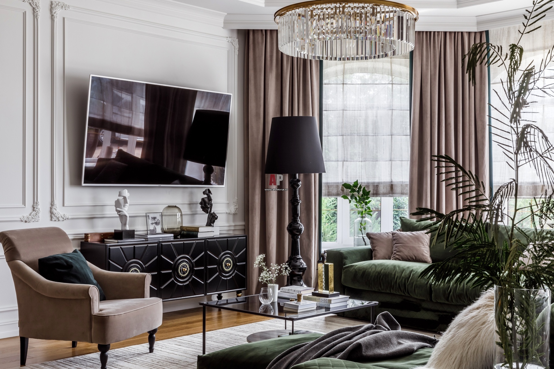 Дом в Тамани с элементами ар-деко. Интерьер гостиной.