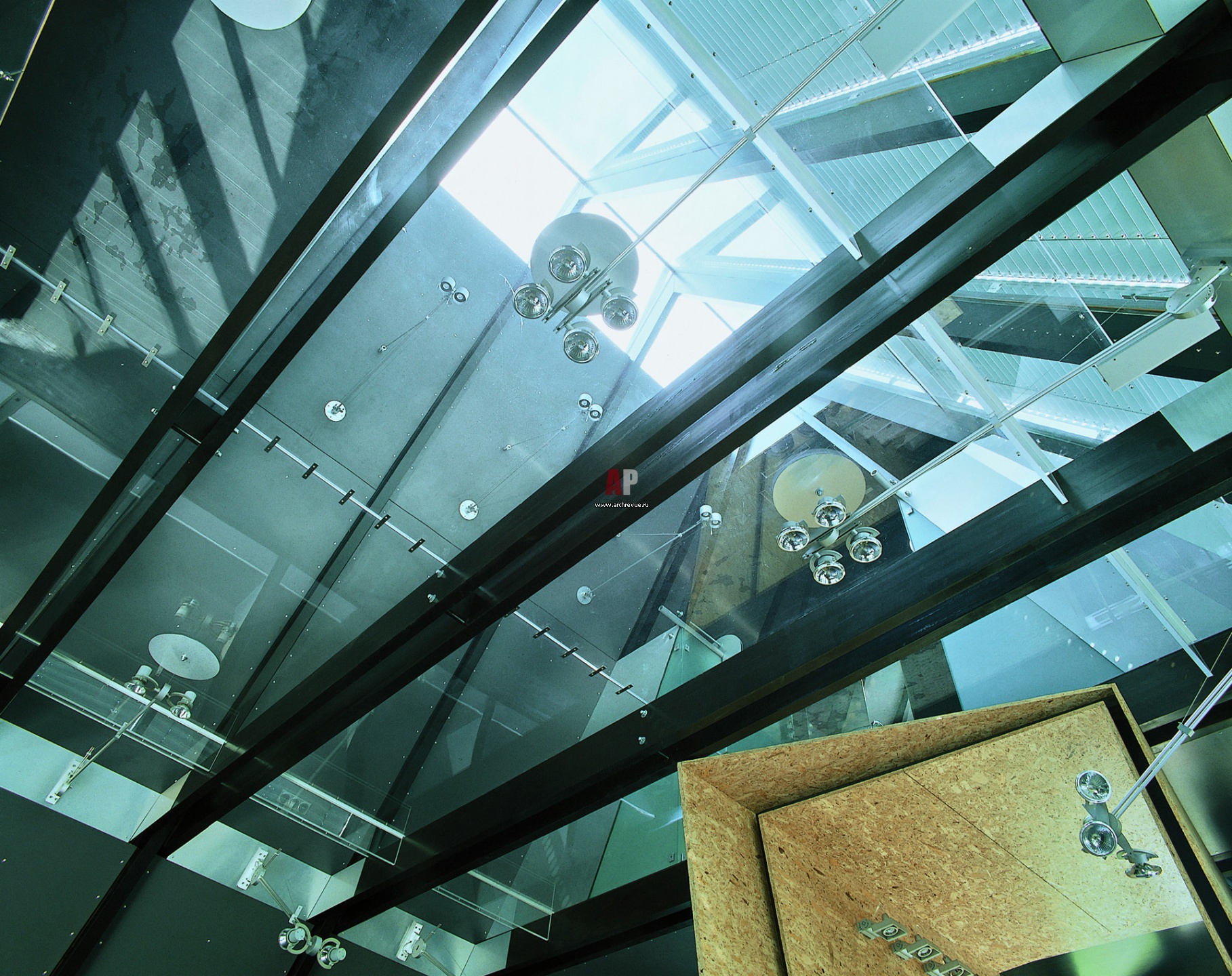 Стеклянная плита лежит на массивных поперечных балках. Листы крепятся между собой на металлических болтах. Работы со стеклом, «Стеклопластик-М », «БАСТ 3».