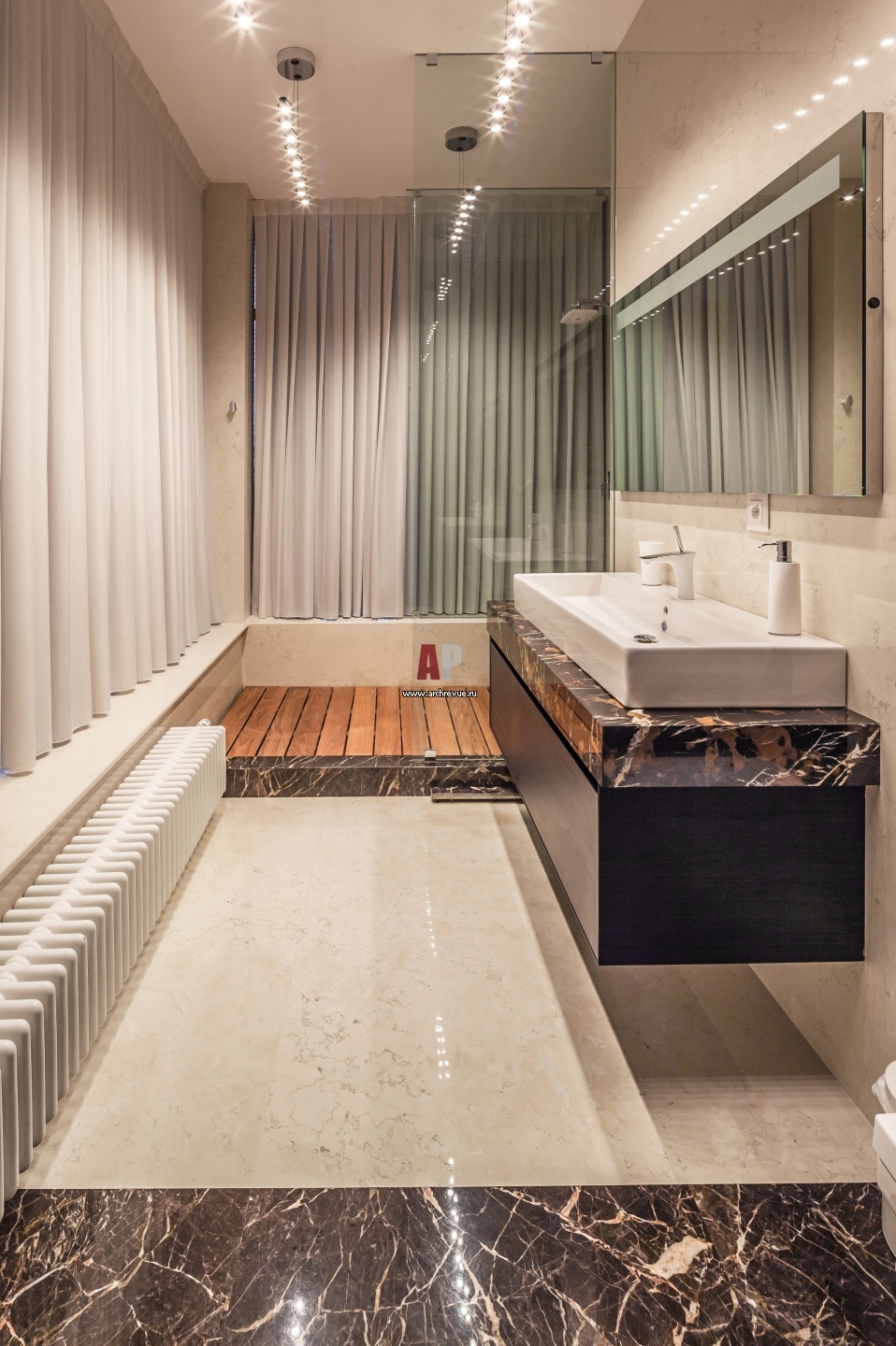 Раздельный санузел при хозяйской спальне. Душевая комната с окном, обращенным в сад.
