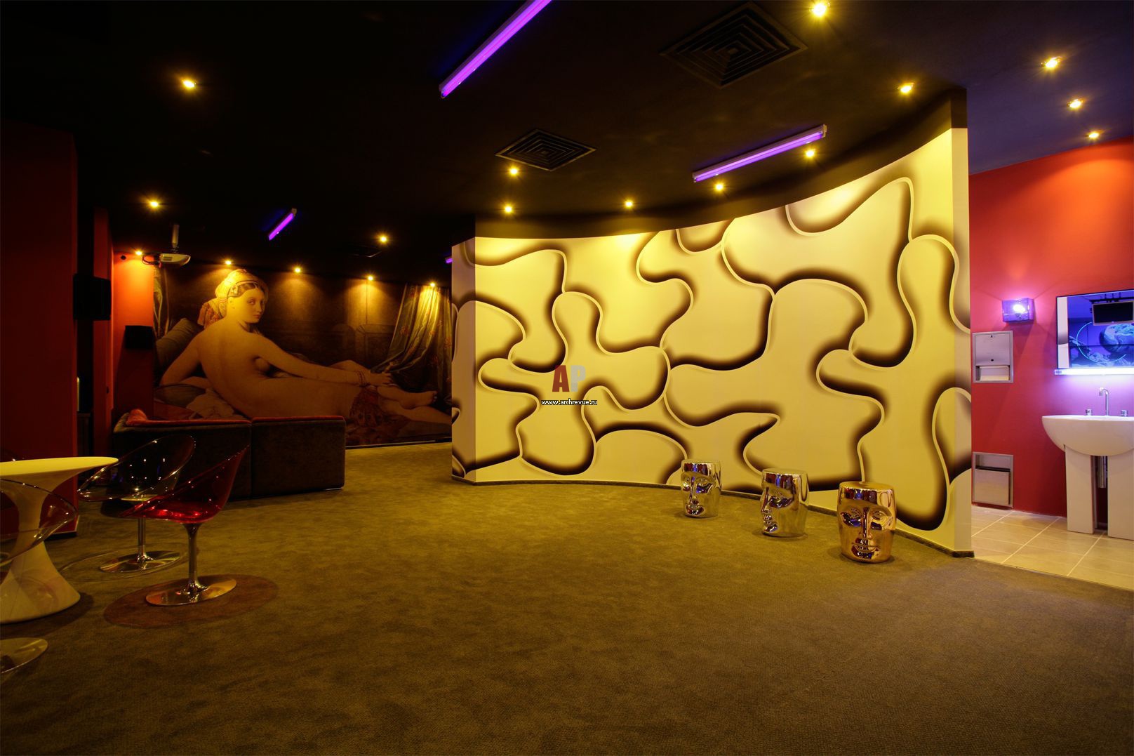 Самый нижний уровень занимает домашний кинотеатра и боулинг. Стена декорирована копией полотна Энгра «Одалиска», печать на ткани работы компании «Скиф ».