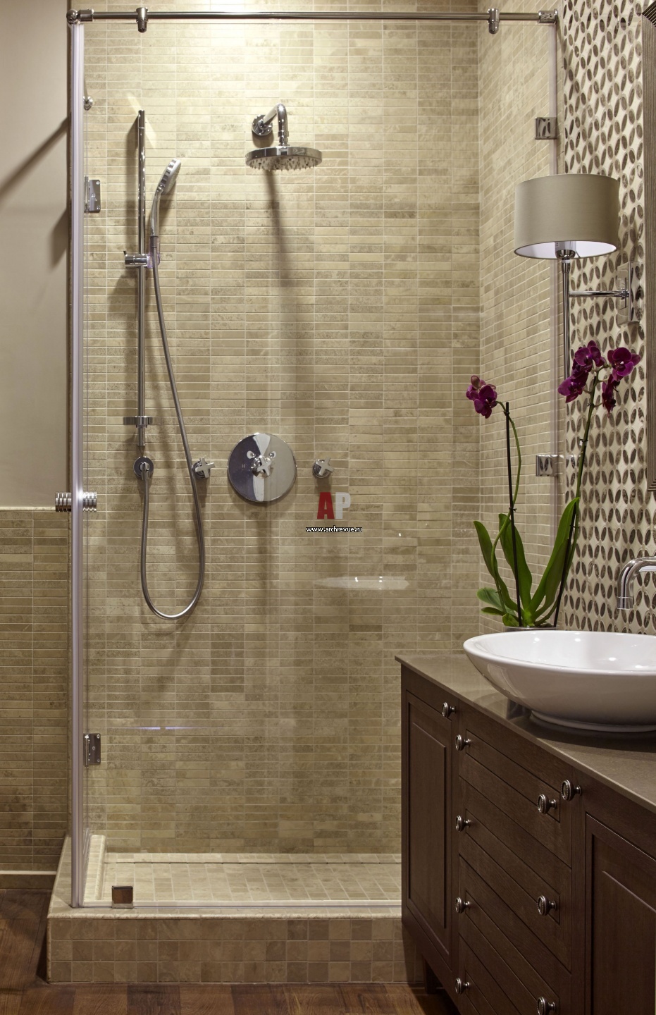 Интерьер ванной комнаты Душевая выполнена по индивидуальным размерам в стекольной мастерской.