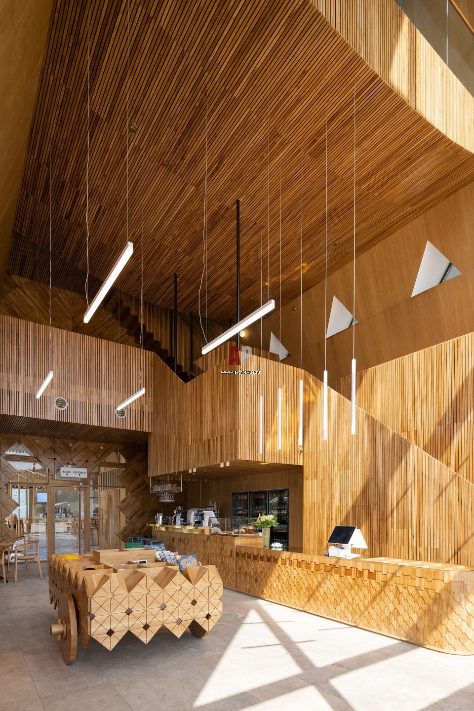 Центр гостеприимства в парке «Кудыкина гора». Входная группа с лобби и сувенирной лавкой.