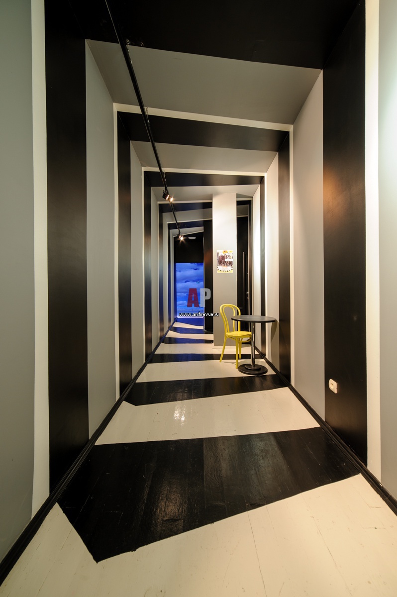 Черно-белый коридор за счет оптического эффекта кажется длиннее и шире.