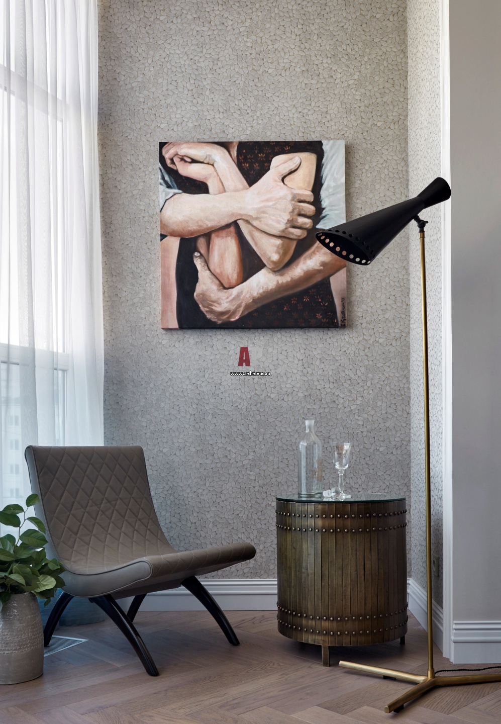 Дизайн утепленного балкона. Обои, Seabrook. Кресло, столик Arteriors. Торшер, La Fibule.