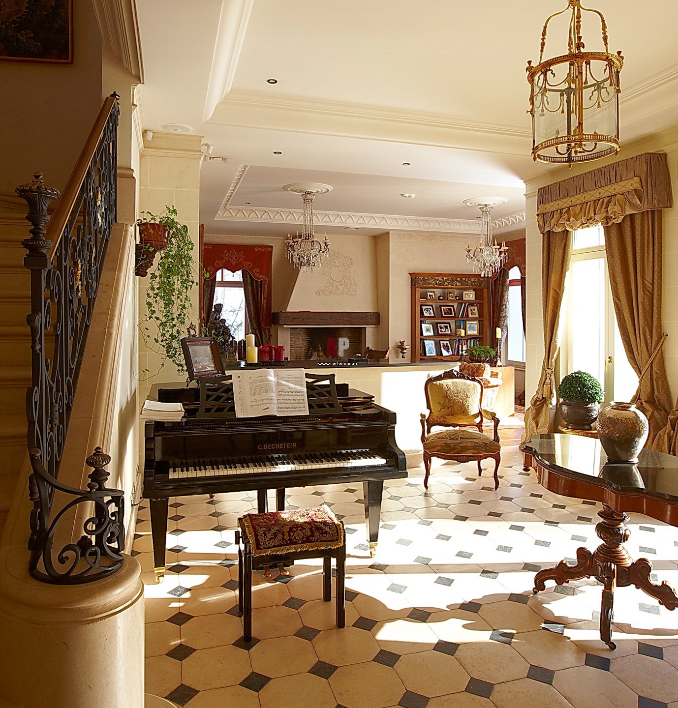 Лепнина выполнена по эскизам авторов проекта. Ее орнамент вдохновлен старинными французскими образцами.