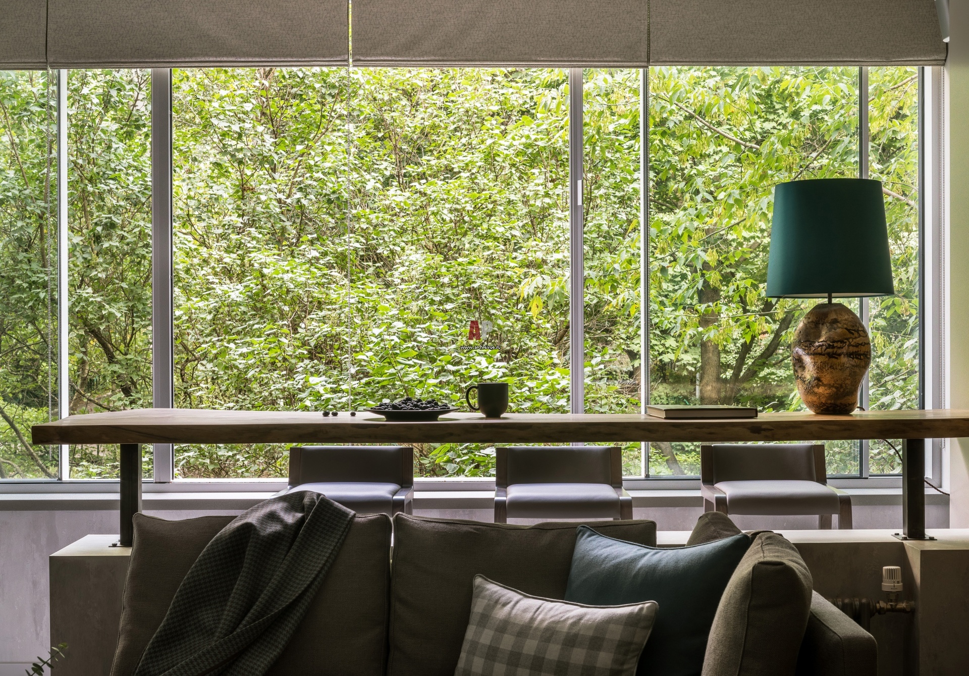 К студии дизайнер присоединила лоджию, поменяла окна, поставила раздвижные стеклопакеты с тонкими рамами. Это позволило улучшить инсоляцию, впустить в интерьер свет и воздух и создать ощущение жизни на природе.