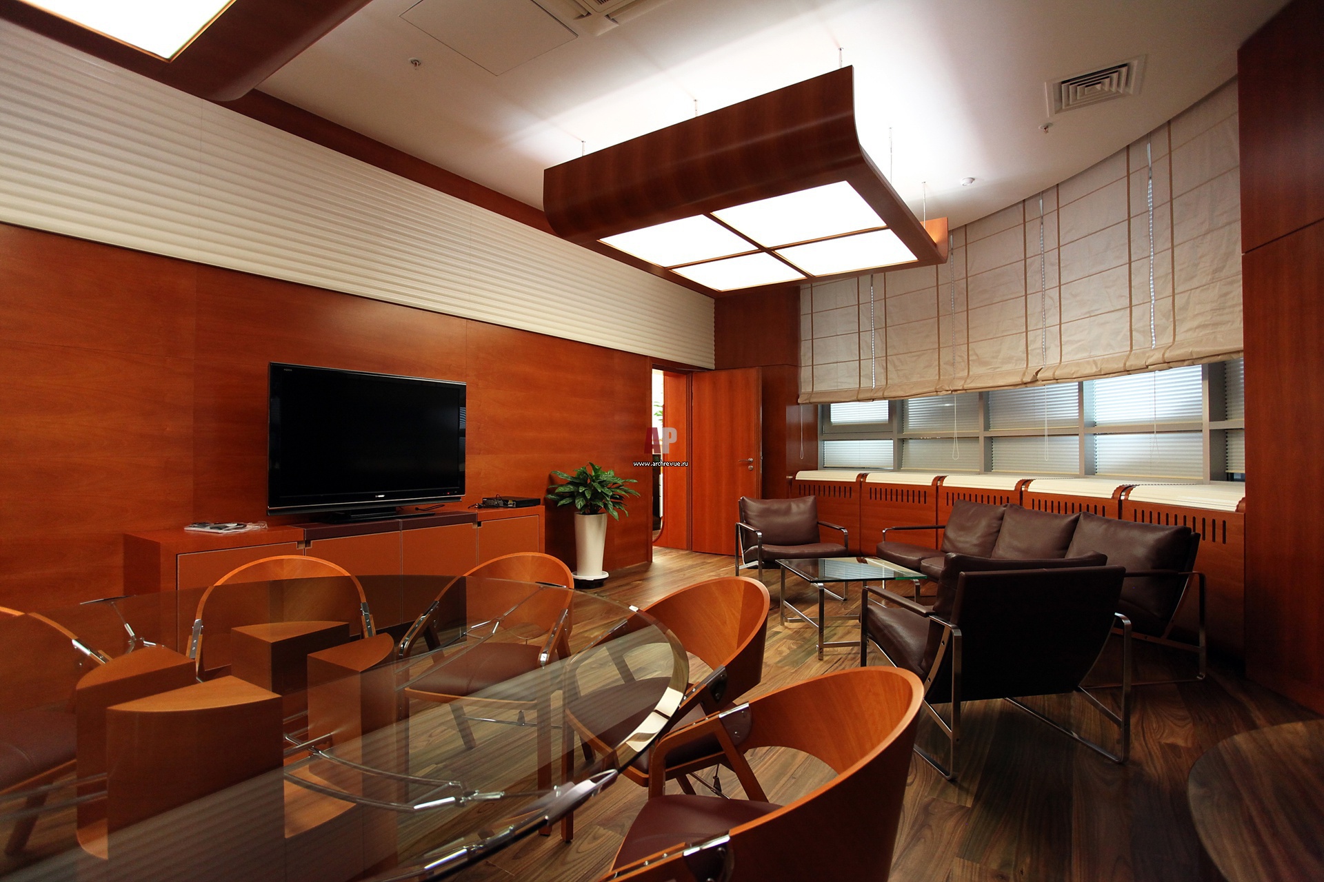 Переговорная с радиусным остеклением. Широкий декоративный фриз из «гофрированного» дерева, выкрашенного в цвет слоновой кости.