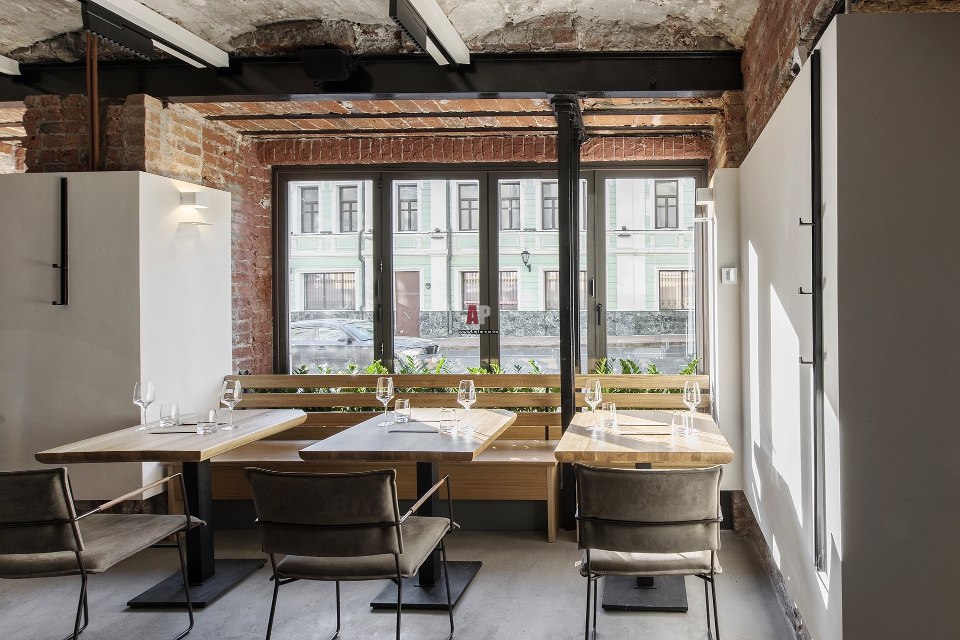 Дизайн интерьера японского ресторана с элементами стиля лофт и минимализм.